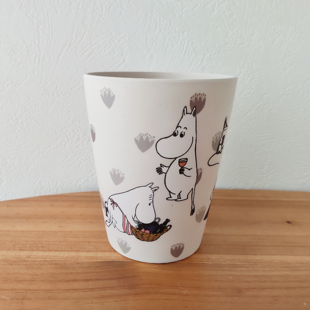 대나무와 옥수수 전분으로 만들어서 100% 생분해 되는 친환경 제품이에요. 플라스틱과 달리 특유의 표면 질감이 좋고요,가볍고 오래 쓸 수 있는 일상 용품이에요. 컵을 잘 떨어트리는 아이들, 북유럽 캐릭터인 무민의 독특한 캐릭터를 애정하시는 분들에게 권해드립니다.